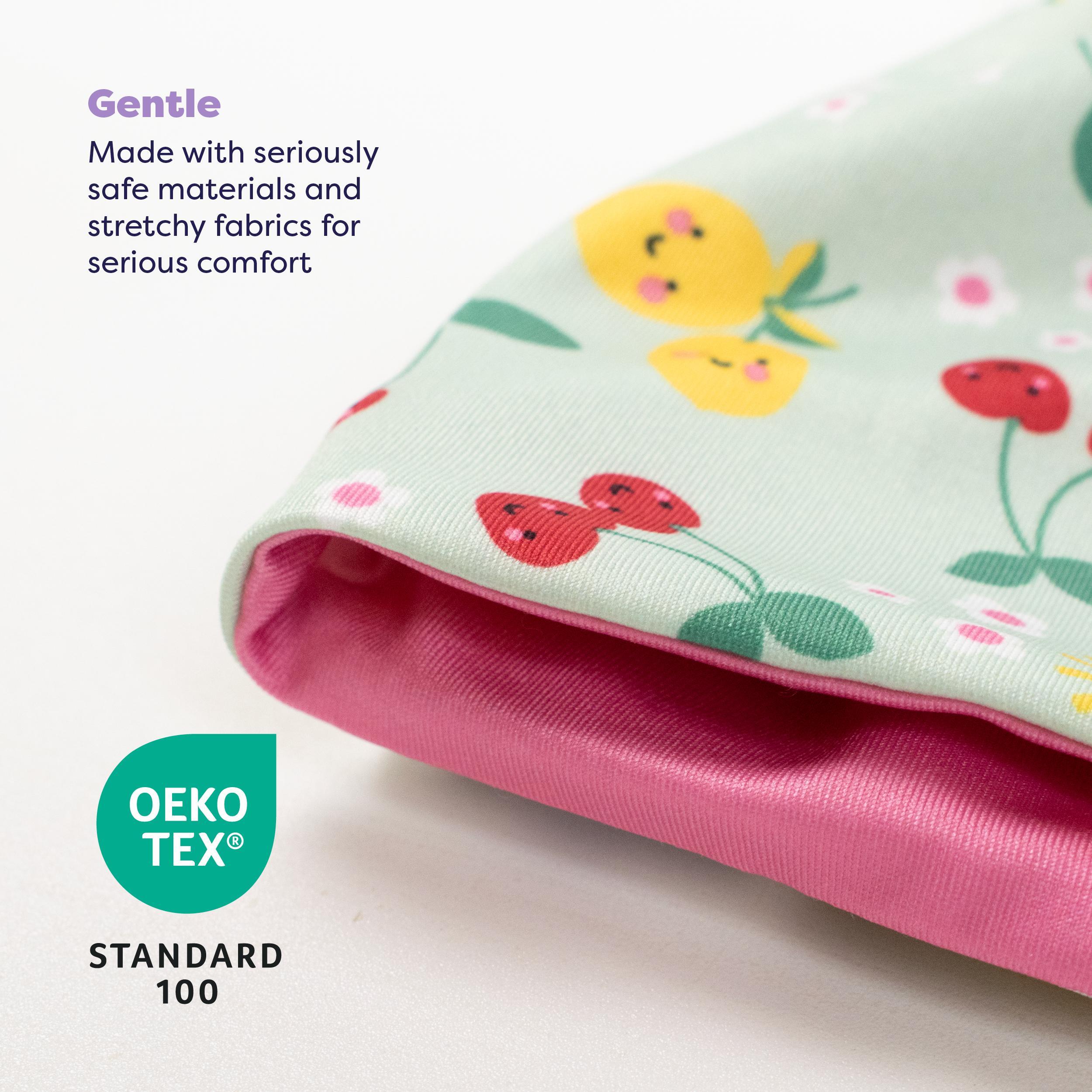 Adjustable Fit: The durable material contains spandex for stretch, while the elasticated back adjusts for a custom fit that grows with your baby.