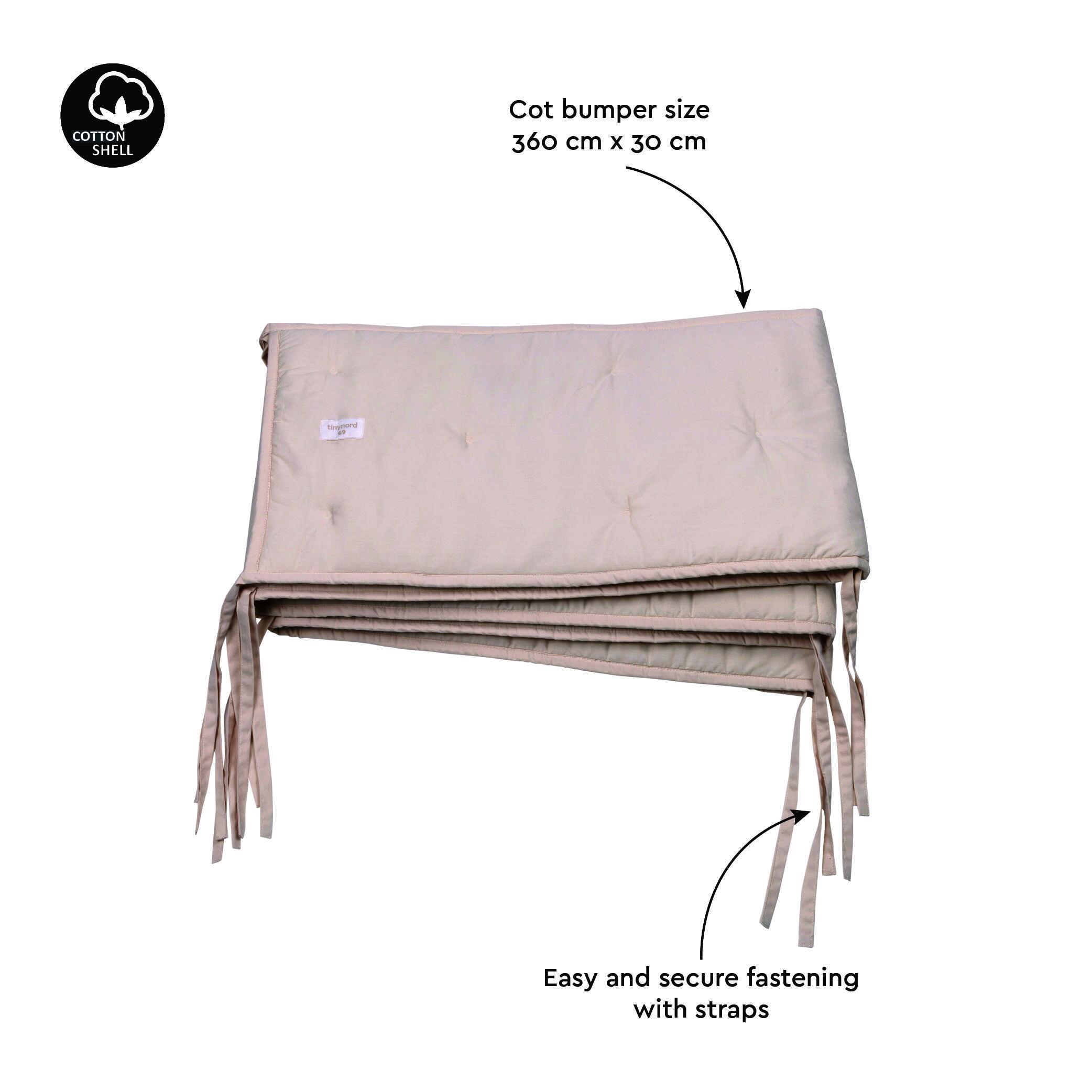 100% naturaalse puuvillakangaga kaetud võrevoodi pehmendus, katab kogu voodi ääre. Loob mugava ja turvalise keskkonna magamiseks kattes võrevoodi võred, hingav ning naha vastas pehme materjal. Paindlik ja kindel kinnitus kaherealiste seotavate nööridega. Masinpestav. Kasutusjuhend: Kinnitada paeltega voodipehmendus ülevalt voodi külge ning alumine serv asetada madratsi vahele, et voodipehmendus püsiks stabiilselt.